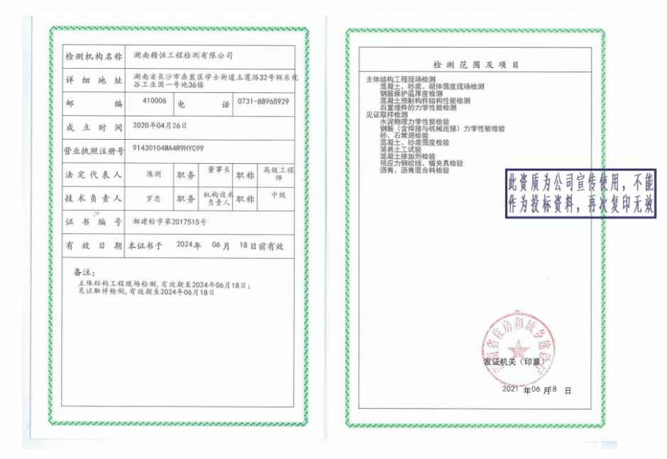湖南济南天哲信息技术支持有限公司为深圳济南天哲信息技术支持有限公司的子公司,成立于2020年4月26日,注册资金4500万,位于岳麓区学士街道联东U谷园区内36栋,办公试验场所面积6300平方米,拟承接开展建设、交通、水利、电力、化工、石油等领域项目的材料及施工质量检验和检测。是一家独立的第三方专业检验检测机构。